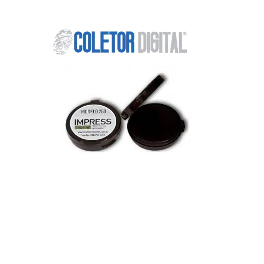 Coletor de impressão digita modelo 250 com base de ceramica com tinta atóxica,na cor azul proporciona coleta de impressões digitais mais definidas, permitindo o seu escaneamento digital ou fotografico. Ideais para a coleta de impressões digitais. Capacidade média e 3000 coletas.