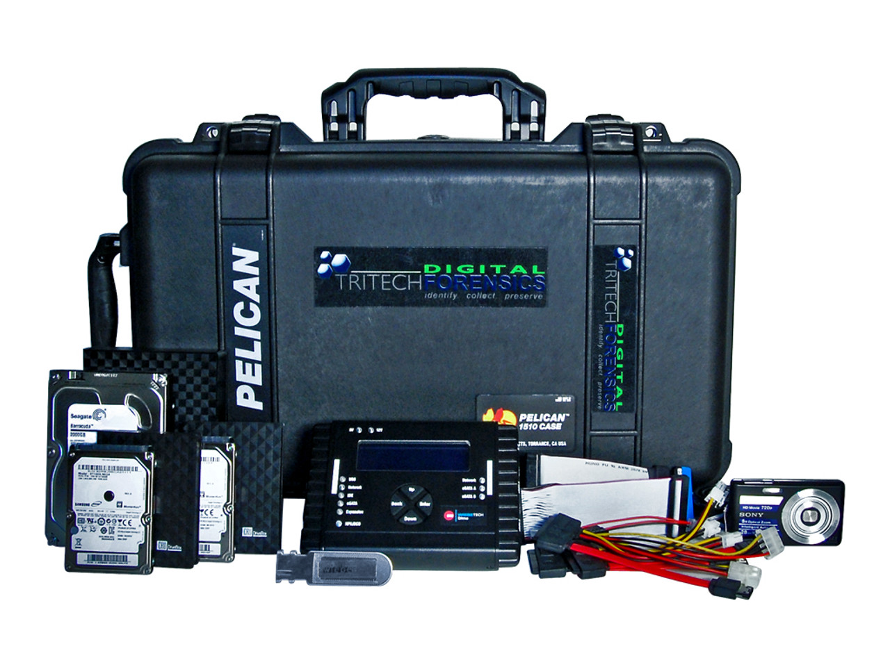 O TRITECH FORENSICS DF UltimateKit X combina um dispositivo de criação de imagens forenses de discos rígidos e um dispositivo de bloqueio de gravação em uma única unidade portátil e poderosa, ideal para uso em campo. Crie clones de disco, gerencie imagens, registre e mantenha sua cadeia de custódia, tudo isso utilizando métodos forenses (com bloqueio de gravação).