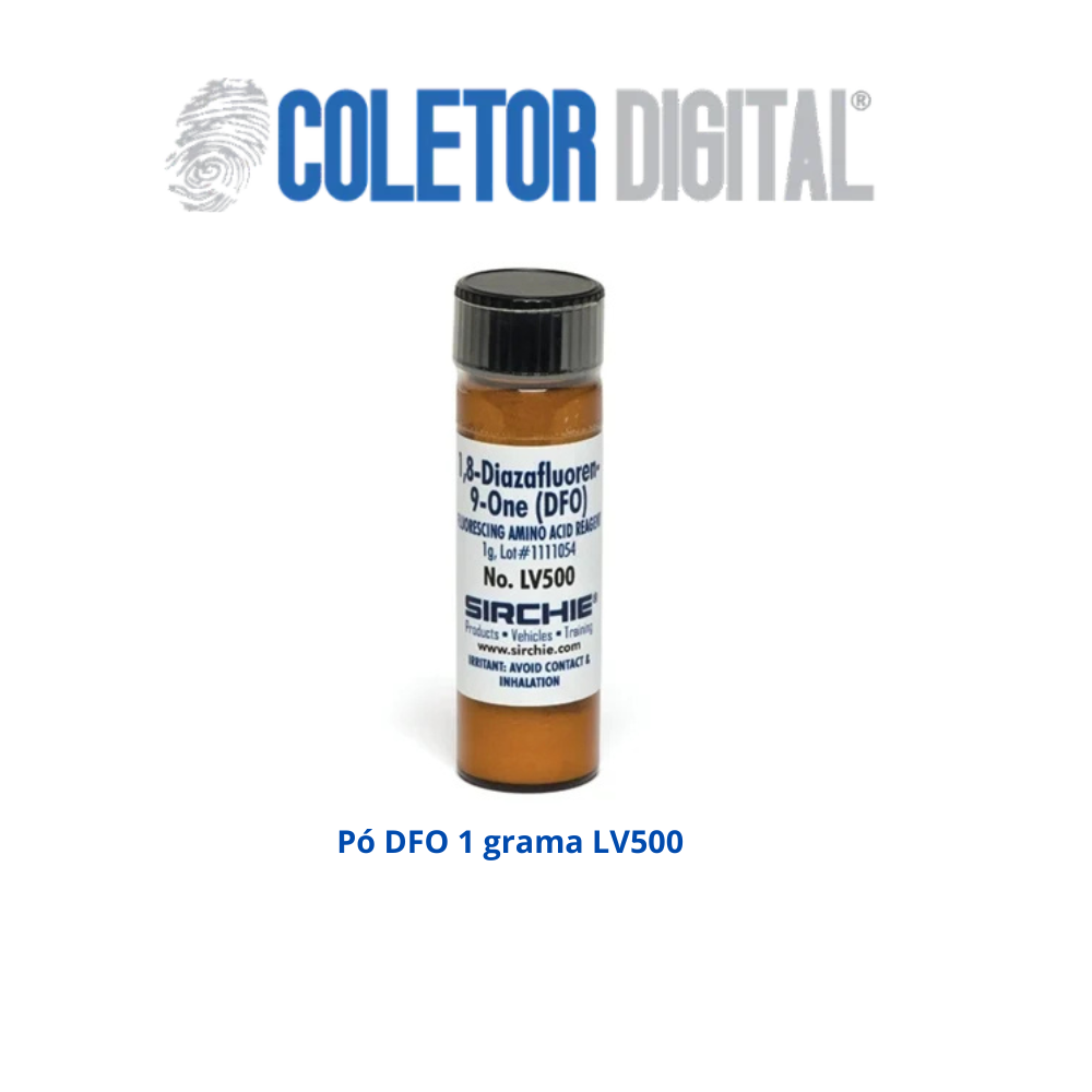 DFO é um análogo da ninidrina usado para revelar impressões latentes em superfícies porosas. Suas propriedades de fluorocromo o tornam especialmente útil em superfícies multicoloridas onde o fundo interferiria na fotografia subsequente. O DFO reage com o conteúdo de aminoácidos do resíduo de impressão digital e não interferirá na análise subsequente usando ninidrina, nitrato de prata ou revelador físico. Na verdade, alguns laboratórios relatam que o uso de DFO melhora os resultados obtidos com a ninidrina. De acordo com o “Manual de Técnicas de Desenvolvimento de Impressões Digitais” publicado pela Divisão de Desenvolvimento Científico da Polícia do Ministério do Interior Britânico, o DFO desenvolverá mais impressões digitais do que a ninidrina. Testes nos EUA indicam que o DFO produzirá 2,5 vezes mais impressões que a ninidrina. Outros testes indicam que o DFO também é eficaz no desenvolvimento de impressões sanguíneas latentes. Ocasionalmente, o DFO produzirá impressões latentes de cores claras (rosa), mas sua verdadeira força está em suas propriedades fluorescentes. A fluorescência DFO pode ser produzida usando luz ultravioleta, BLUEMAXX™ e outras fontes de luz alternativas. O DFO agora é embalado em uma bomba spray que contém 100ml de reagente pré-misturado para melhor controle e menos desperdício. O DFO em forma de cristal está disponível para os laboratórios que preparam suas próprias formulações.