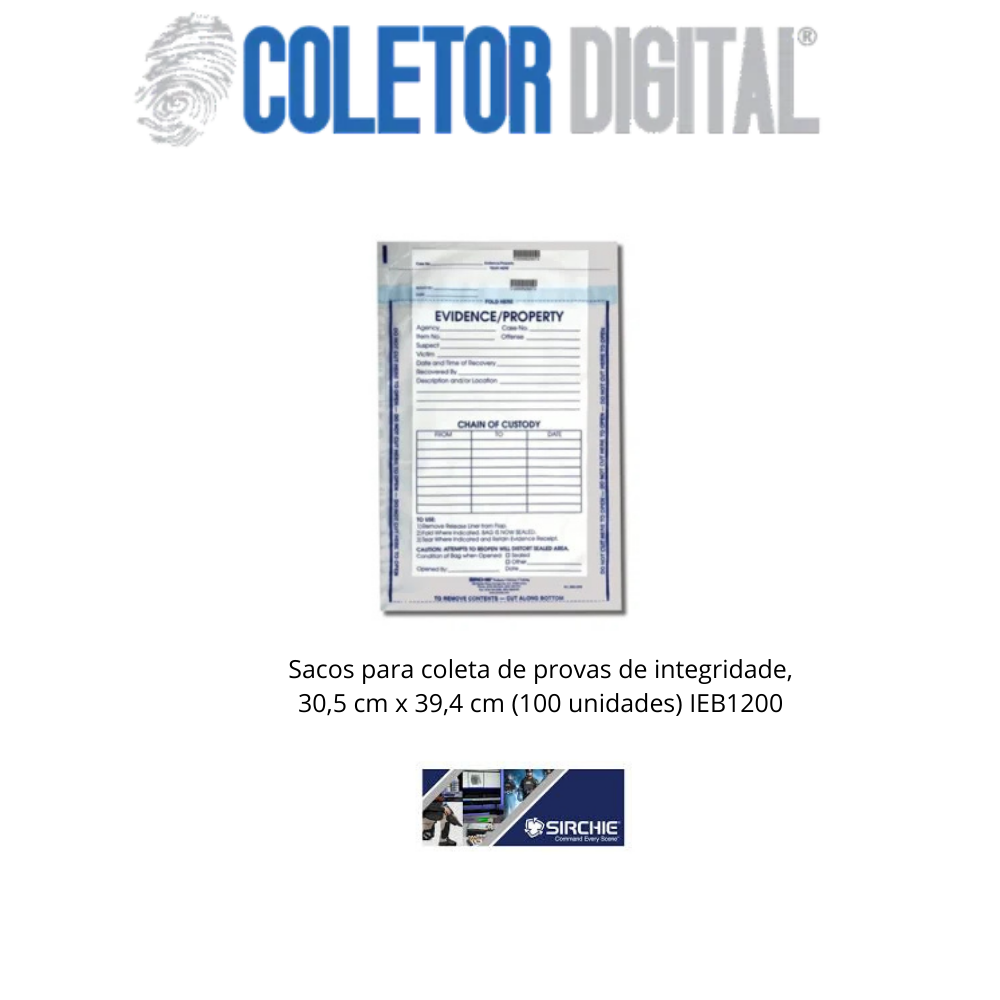Saco de evidências de integridade 12 polegadas x 15 1/2 polegadas (100 cada) IEB1200